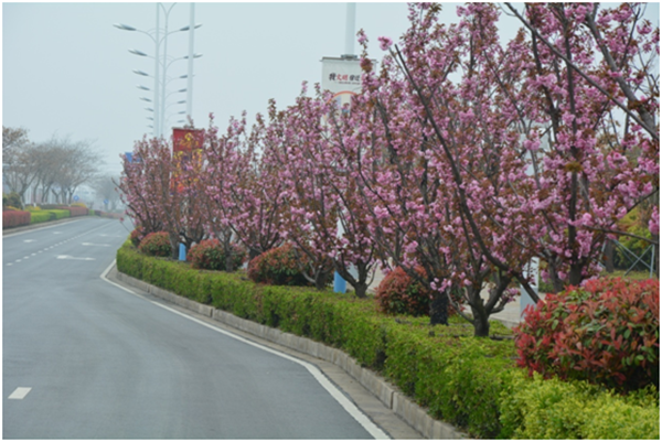 為把園區(qū)青海湖西路打造園區(qū)“櫻花大道”,按管委會部署,開發(fā)公司市政工程管理部對青海湖西路的行道樹進(jìn)行整體更換,用櫻花代替原長勢不佳的廣玉蘭,經(jīng)過兩年的精心養(yǎng)護(hù),整體長勢良好,每逢春季來臨櫻花盛開,為園區(qū)的景觀增添亮點(diǎn),成為一道獨(dú)特靚麗的風(fēng)景線。