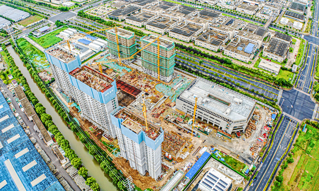7月26日,蘇宿工業(yè)園區(qū)青年公寓項(xiàng)目施工現(xiàn)場(chǎng),工人正在加緊施工。