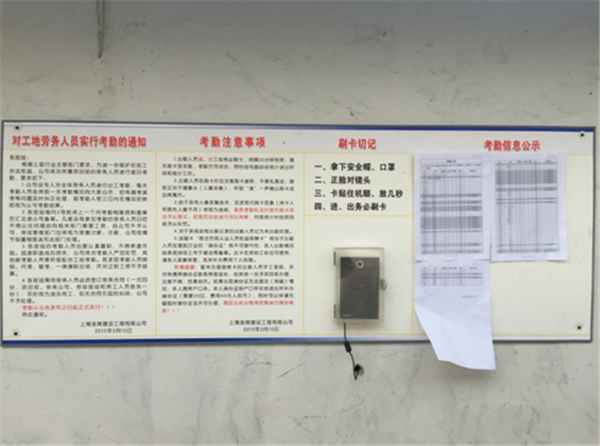 (圖為園區(qū)夢家園項(xiàng)目農(nóng)民工實(shí)名考勤處現(xiàn)場)